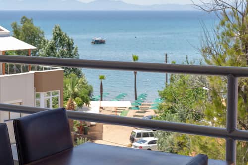 Emreli Suit Otel Ayvalık - Badavut. The hotel has a private area at the beach only 50 metres away. Das AEmreli Suite Hotel bietet geräumige Apartments mit einem Wohnzimmer einem TV Klimaanlage und einer Minibar.